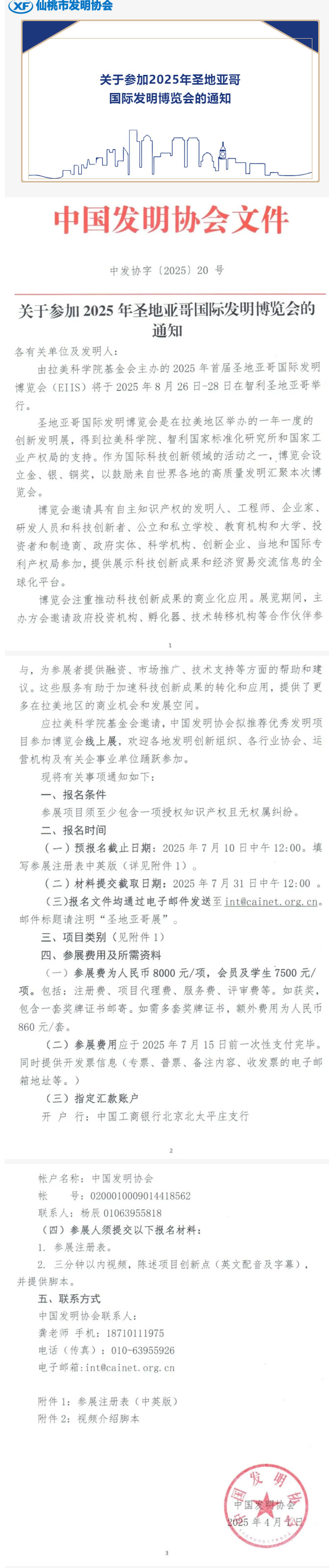 关于参加2025年圣地亚哥国际发明博览会的通知